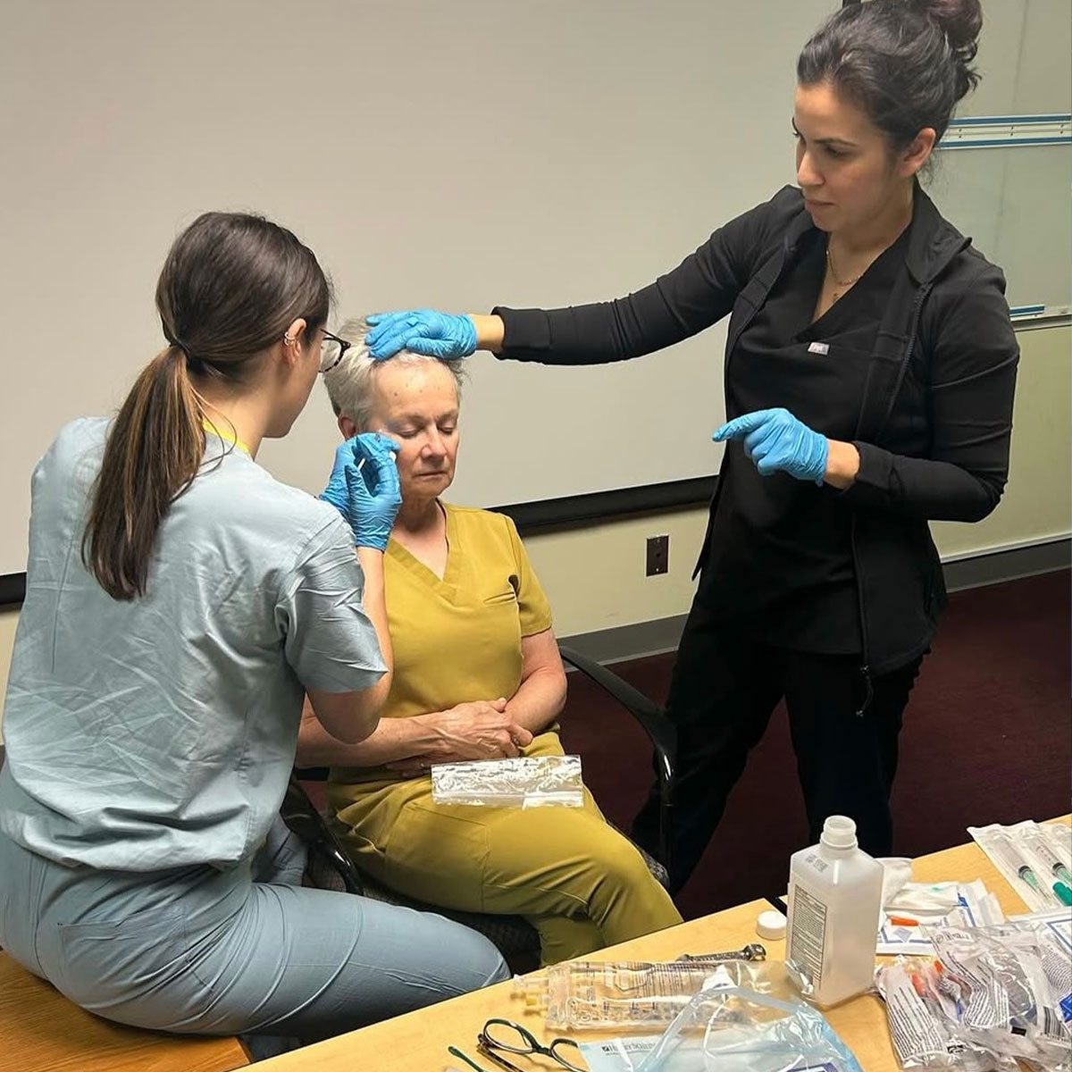 Dr. Sahar Nadimi teaching a Loyola ENT resident about facial anatomy and proper injection techniques for Botox.