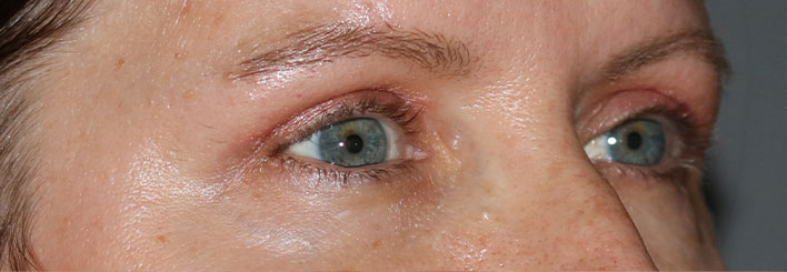 Before and 4 months after upper eyelid surgery on a 53 year old female.